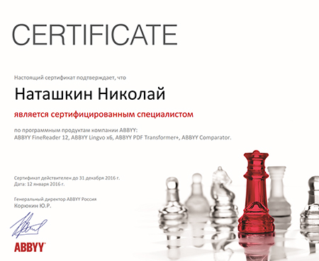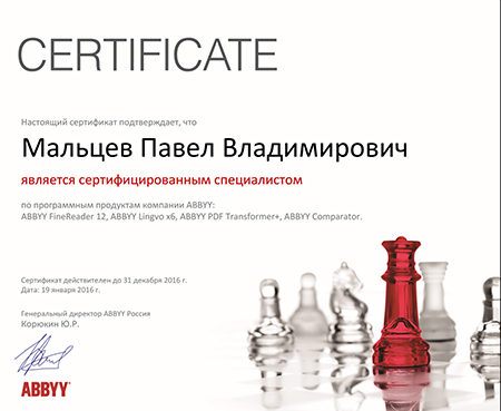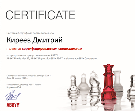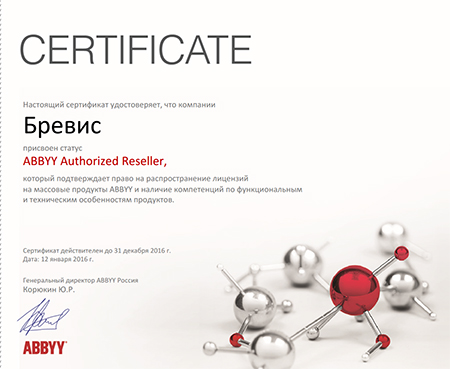 В связи с вступлением в силу новой Партнерской программы ABBYY Россия сотрудники компании Brevis повторно прошли сертификацию. Актуализированный статус подтверждает наличие компетенций по работе с продуктами ABBYY и будет действовать до 31 декабря 2016 года.