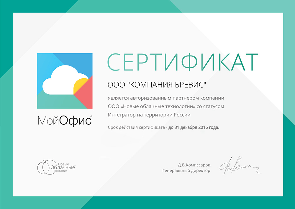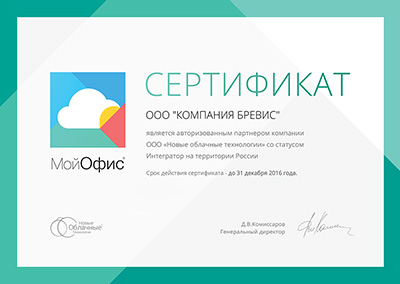 ООО "Компания Бревис" стала авторизованным партнером ООО "Новые облачные технологии" - разработчика пакета офисных программ МойОфис®, со статусом Интегратор на территории России.