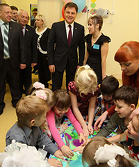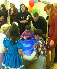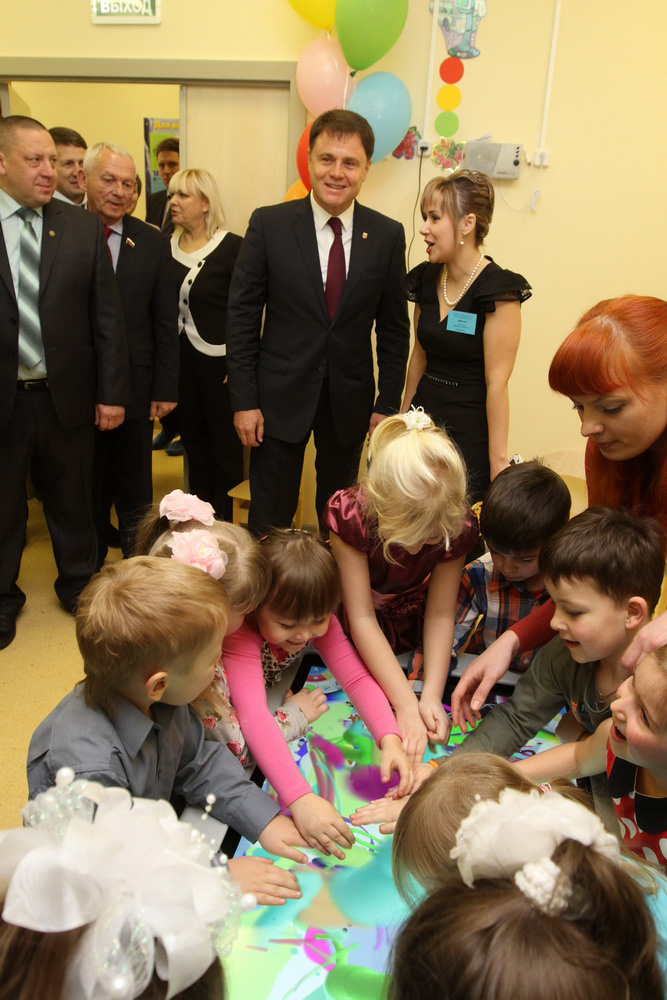 Для почетных гостей праздника заведующая детским садом "Мечта" Ирина Большова провела экскурсию. Она отметила, что в новом дошкольном учреждении нашли применение новейшие технологии. В частности в рамках проекта модернизации дошкольного образования компанией BREVIS данный детский сад одним из первых был оснащен последним достижением интерактивных технологий: интерактивным столом ST442i.