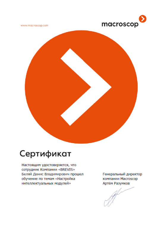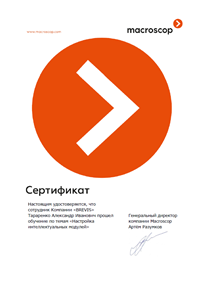 Мы рады сообщить, что сотрудниками нашей компании в очередной раз успешно пройдено обучение и тестирование в известной российской компании MACROSCOP по теме "Настройка интеллектуальных модулей".